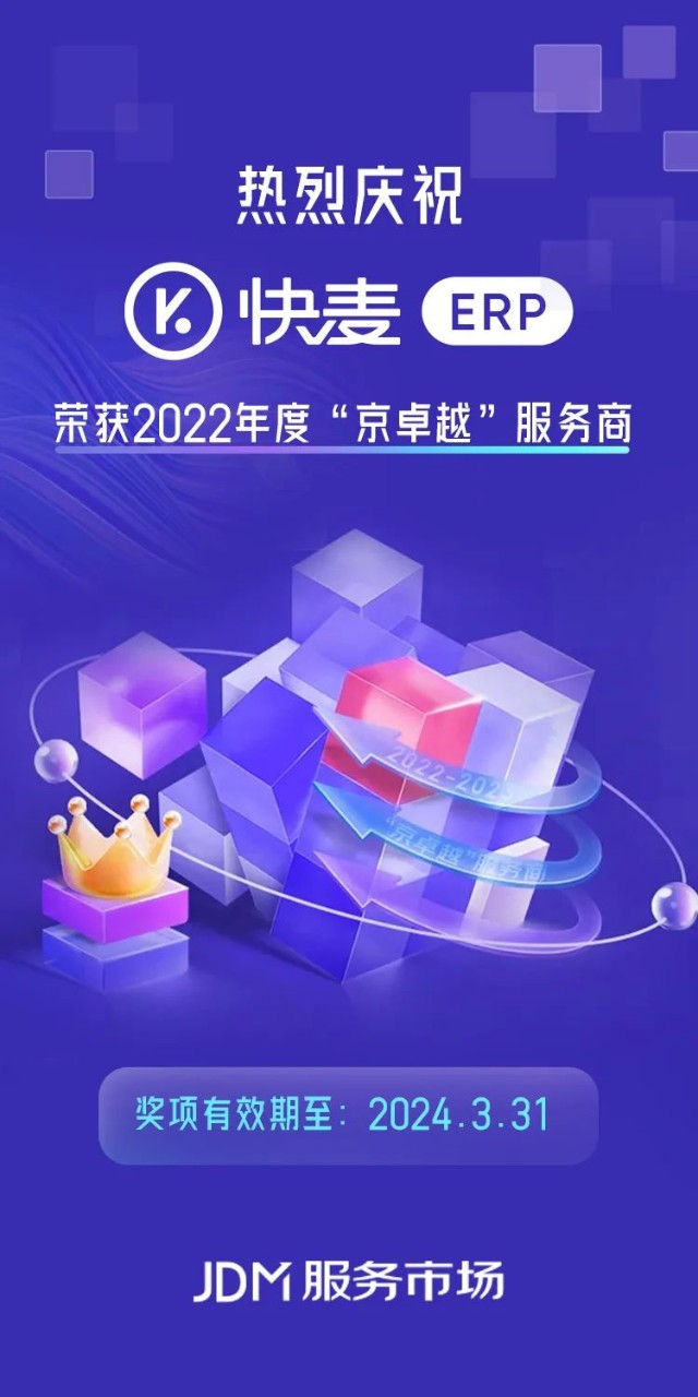 近日,2022年度京东服务市场“京卓越”服务商获奖名单正式公布,旋乐吧spin8科技旗下快麦ERP再次凭借优质的服务,荣获软件类服务商订单工具“京卓越”合作伙伴奖项。