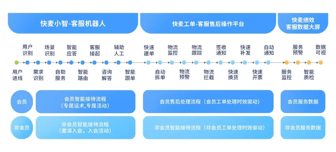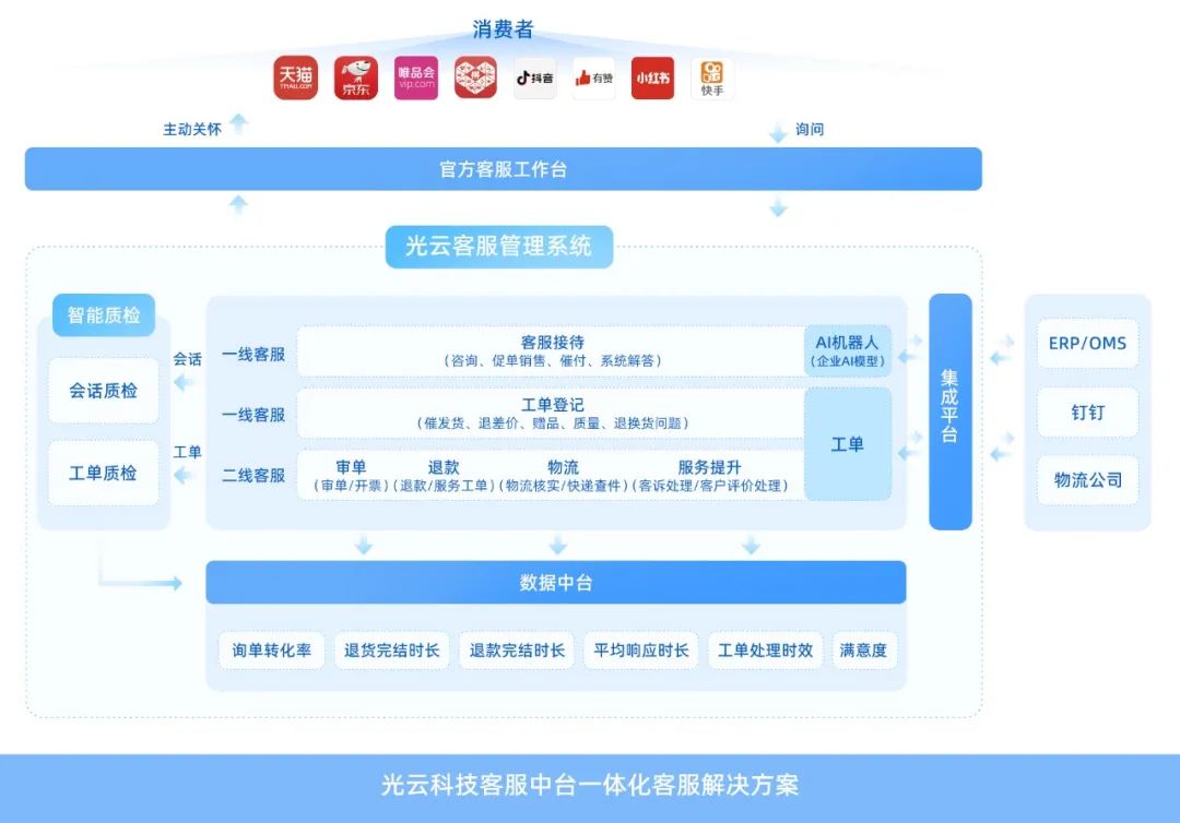 早在2015年,围绕电商客服的各类SaaS产品便层出不穷,企业早已围绕电商客服做了诸多部署,但是不同客服系统之间形成“烟囱式”布局在客服全链路上形成数据孤岛,企业在客服管理上遇到不少细节挑战:售前售后SOP难以协同执行;服务策略无法分人群贯穿执行;售后部门工作流涉及跨多个系统,信息孤岛难定位问题,用户问题解决时效性难以把控;以及信息孤岛导致售后客服涉及很多重复机械性从一个系统导数据到另一个系统的工作,繁琐且人效低。