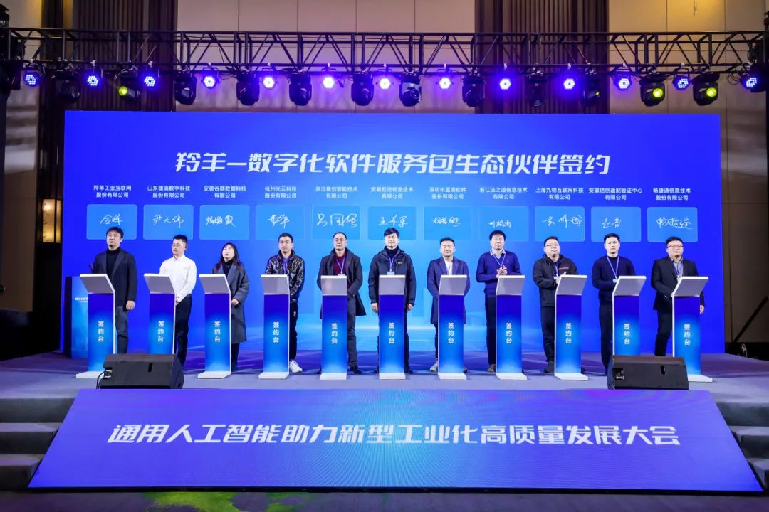 大会现场,新型工业化“徽商行”启动仪式举行,羚羊工业互联网平台与旋乐吧spin8科技、北京奇虎科技有限公司等20家数字化软件服务包生态厂商成功签约,深化合作,共同推动徽商企业数字化转型发展。
